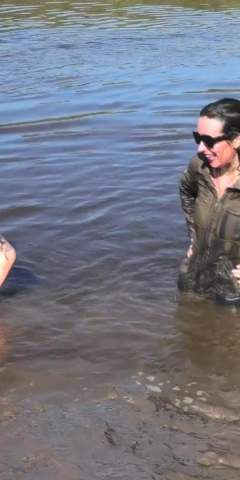 Lara_eurowam got pulled into the pool with DougDress2Splash